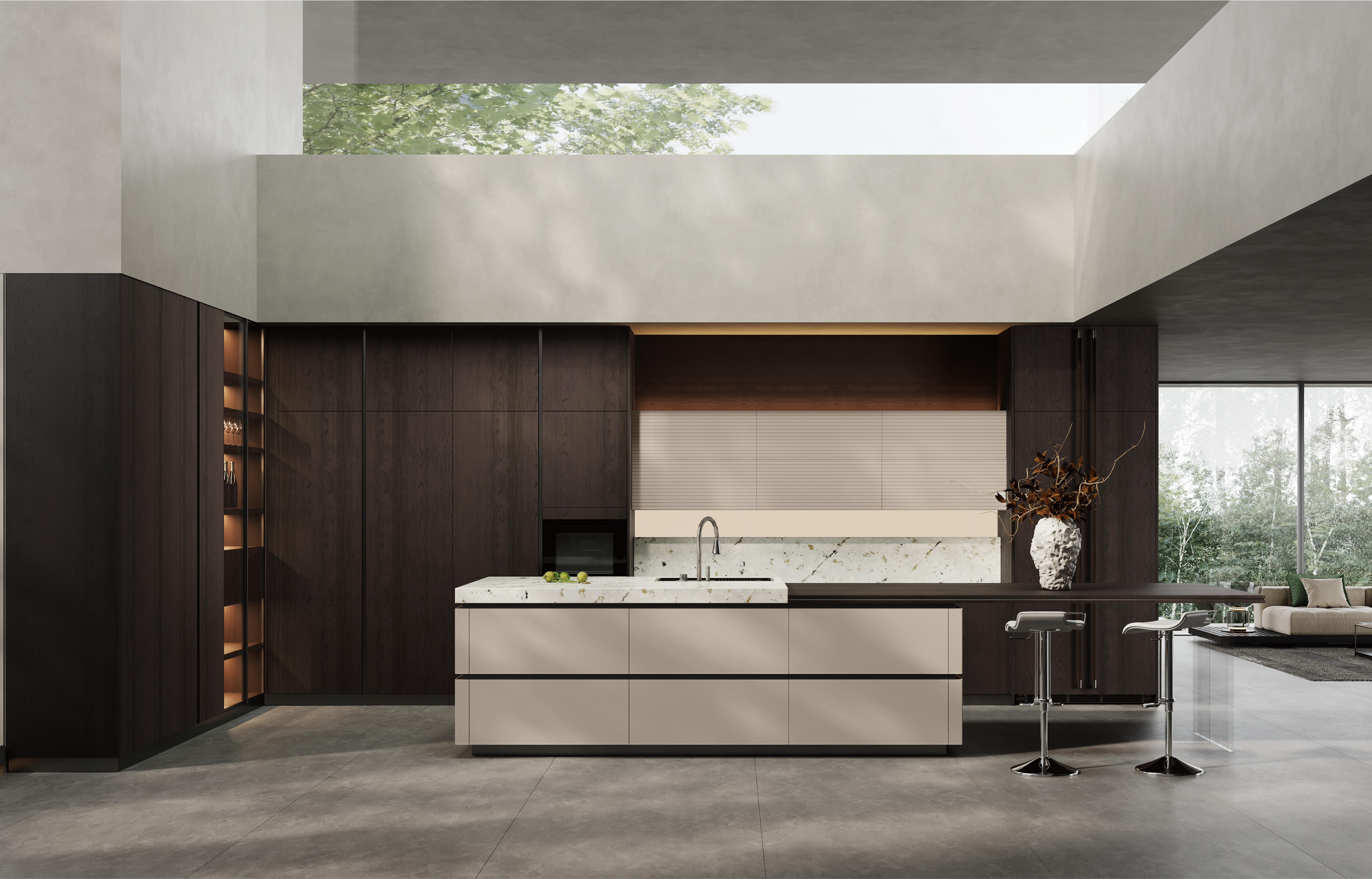 通过尊龙时凯厨柜量体裁柜,定制出适合主厨下厨的烹饪区和洗涤区的舒适高度。